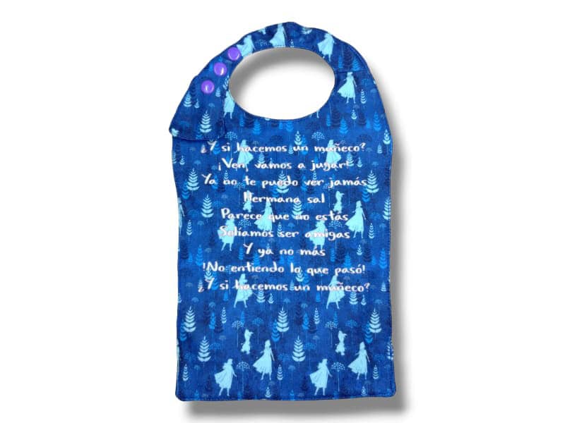 «¡Prepárate para una experiencia de alimentación sin preocupaciones con nuestro adorable babero con diseño de Anna! Este babero ha sido diseñado pensando en la comodidad y la funcionalidad para tu pequeño explorador.